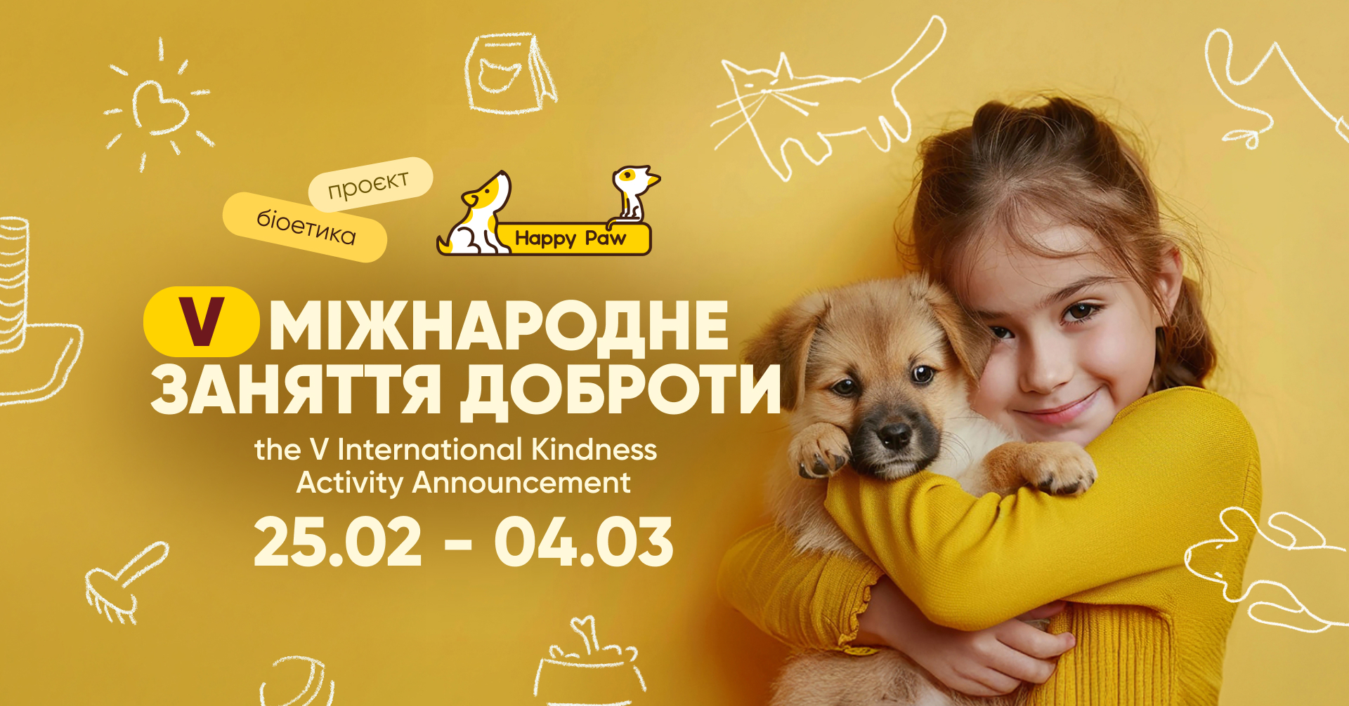 If you wish, after the Activity, you can make a post on Facebook or Instagram about your educational institution’s participation in the V International Kindness Activity writing about your impressions, adding a photo from the Activity and hashtags: #заняття_доброти2026 #happypaw