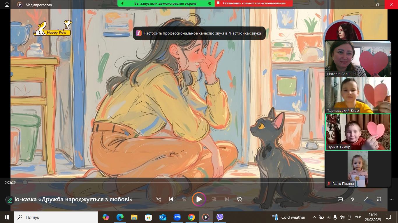 Провести «заняття доброти» (очно або онлайн), присвячене котам і собакам, у період з 25 лютого по 4 березня 2026 року.